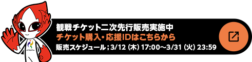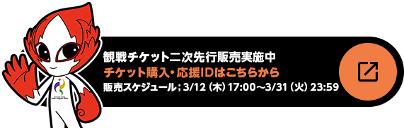 3月12日(木)午後5時から、地域限定なしの観戦チケット二次先行販売を開始いたします。